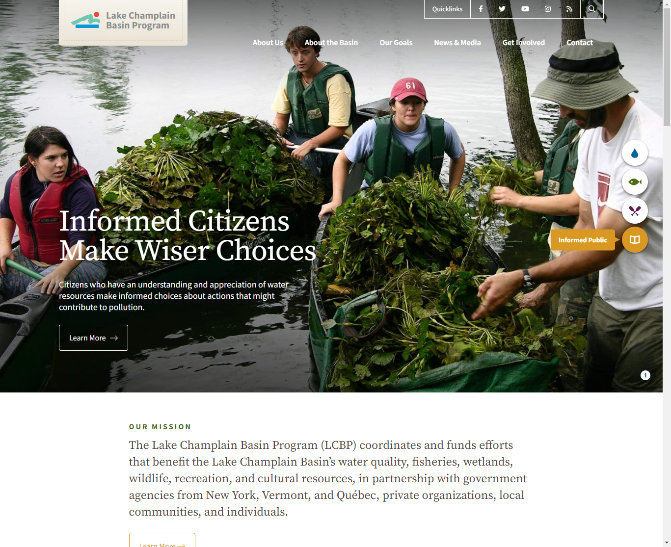 Clean water is the foundation of the Lake Champlain Basin’s diverse ecosystems, vibrant communities, and recreation opportunities. This website was created to coincide with LCBP's TMDL anti-pollution campaign.